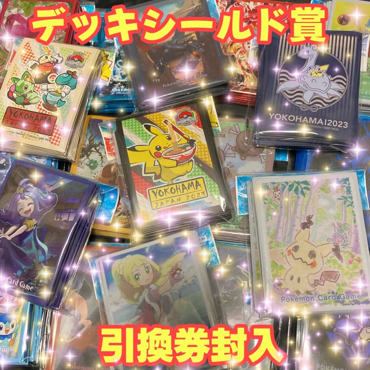 がんばリーリエ 、アセロラ、ピカチュウ、リザードン等のデッキシールドも大量に封入しました!